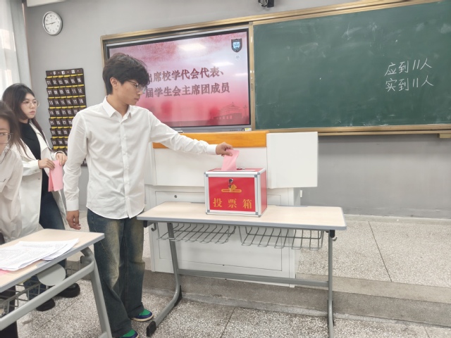 会议第二阶段,周莉同学代表国际教育学院第二届学生会向大会作工作报告,系统回顾了学生会在学院领导和团总支指导下开展的各项工作与取得的成绩。随后,大会审议并通过了选举办法、提案工作报告及代表候选人名单,选举产生了出席校级学代会的代表与新一届学生会主席团成员。