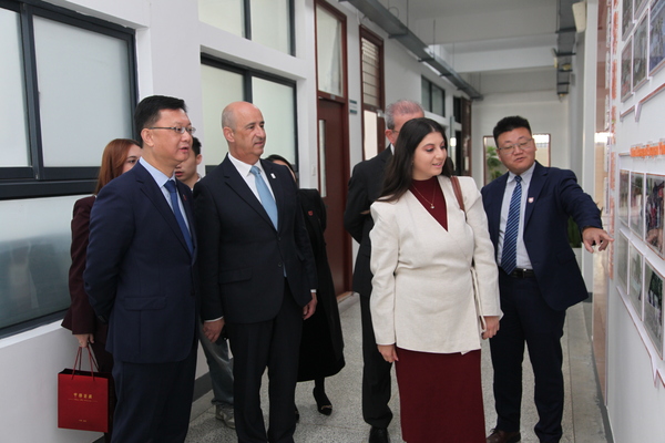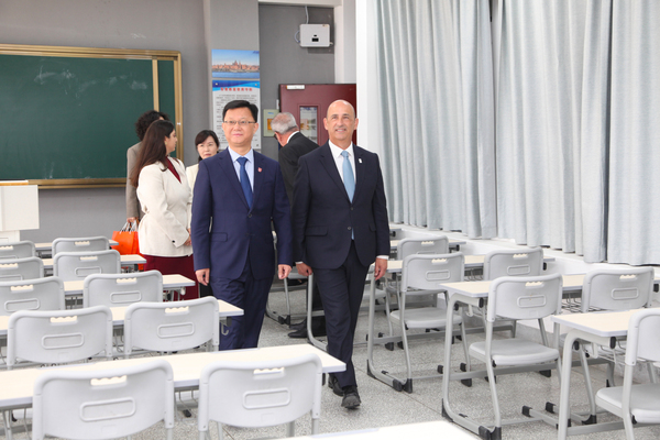 揭牌仪式后,金伯利·扎米特与维拉校长一行参观了中心授课场所与“郑和学院”大事记文化展厅,详细了解了学校国际交流合作工作的开展情况。