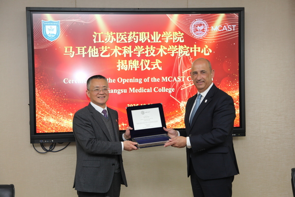 2024年12月,江苏医药职业学院同马耳他艺术科学技术学院在“郑和学院”揭牌仪式上正式签署中心建设协议。中心揭牌标志着两校“姊妹中心”格局的正式建立,该中心也成为马耳他艺术科学技术学院在欧洲地区以外建立的首个海外中心,在两校合作交流史上具有里程碑意义。