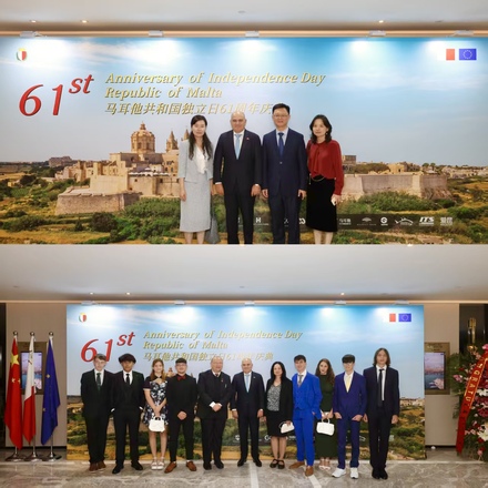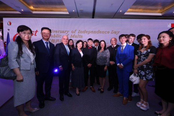 9月24日,马耳他驻华大使馆在北京举办独立61周年国庆招待会。中国外交部副部长华春莹、马耳他驻华大使白瀚轩、各国驻华使节及各界嘉宾齐聚一堂。我校院长殷忠勇率马耳他圣玛格丽特中学“中国角”师生代表团应邀出席活动,副院长张慧、国际合作交流处副处长孙晓艳参加。