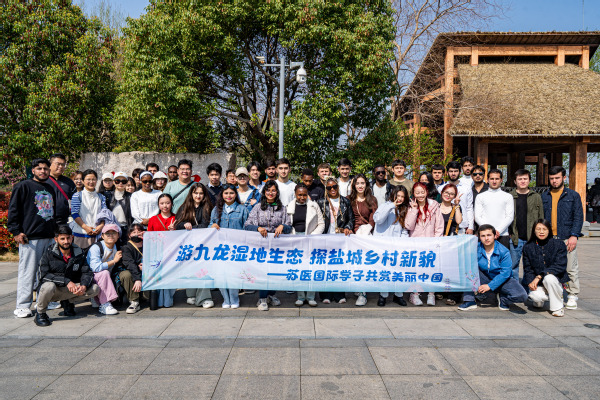 清明期间,国际教育学院组织在校留学生,联合马来西亚英迪国际大学游学代表团四十余人赴盐城建湖九龙口景区,开启一场融合生态探秘、美食体验与非遗文化之旅。